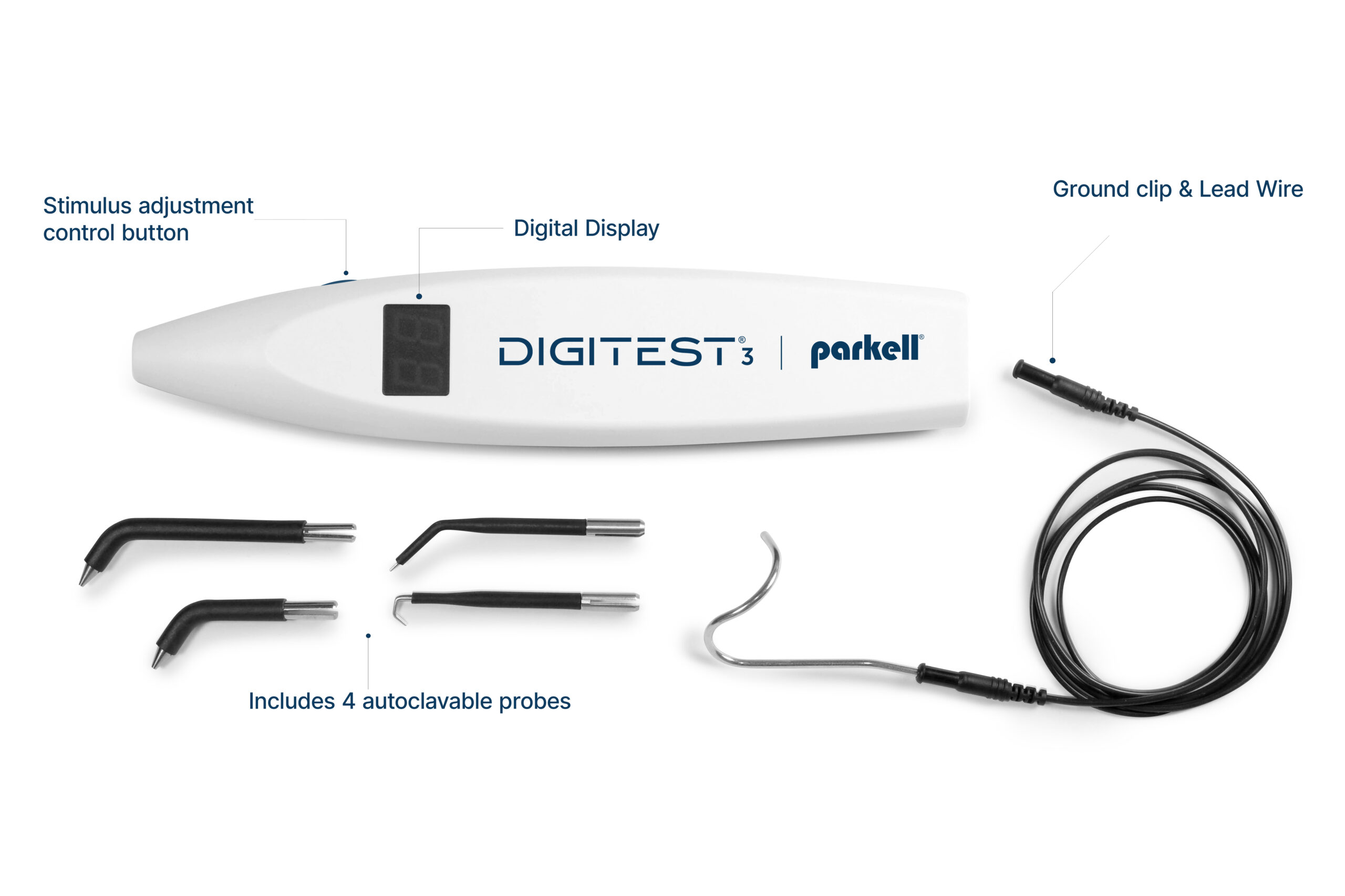 Four autoclavable probes (included) promote easy access to all tooth surfaces – including two precision probes designed for testing crowned teeth